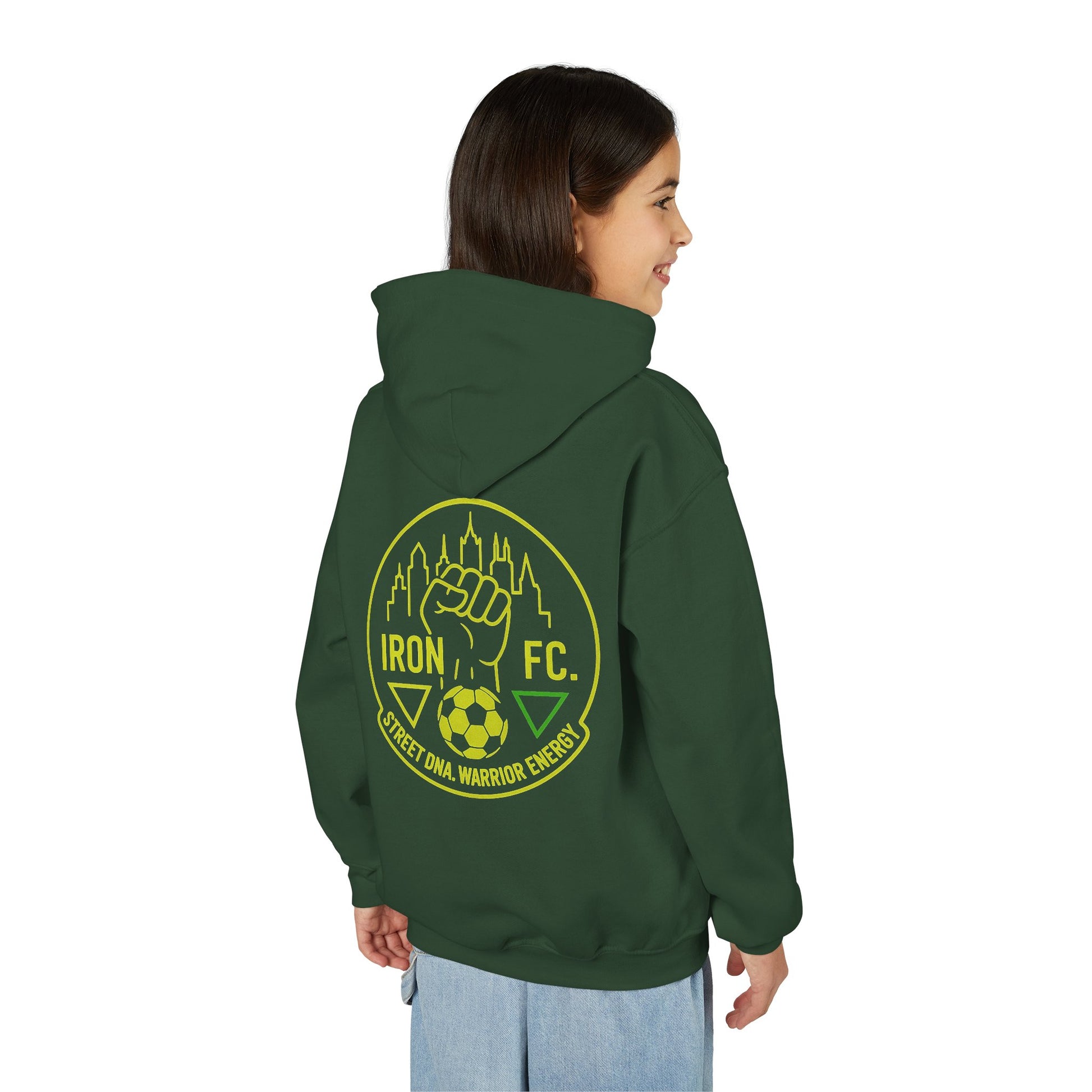 Gear up with the Emerald Strike Kids Hoodie, where comfort meets Iron City style. This dark green hoodie features a soft, light Iron City FC logo on the front left chest, with a bold green-and-yellow back design—each kid’s name in bright yellow, finished with a sharp green triangle. Made for warmth, movement, and everyday wear, it’s perfect for school days, cool practices, and repping Iron City off the field. Cozy, durable, and built for young energy, this hoodie isn’t just clothing—it’s Street DNA for the next generation.