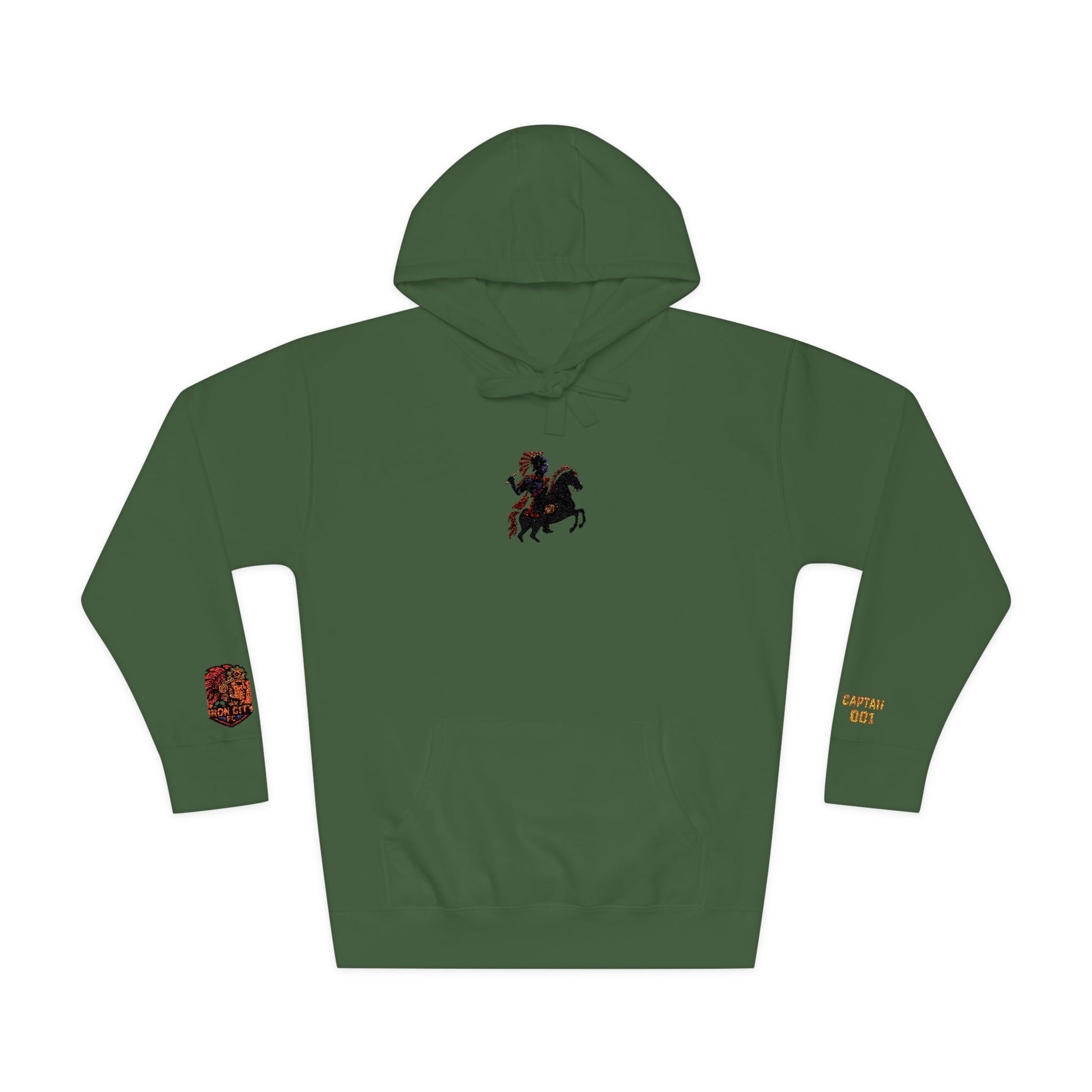 Step into legacy with the “Captain’s Oath” Hoodie, an Iron City FC exclusive honoring the fearless spirit of leadership on and off the pitch. This deep olive green heavyweight hoodie features: